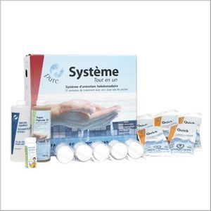 15 Pastilles de cholre (dure 1 semaine chaque) qui règle le chlore de l'eau pour que les bactérie et les algues soient détruites.